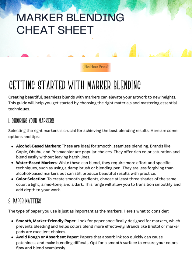 - One Marker Blending Cheat Sheet in PDF File